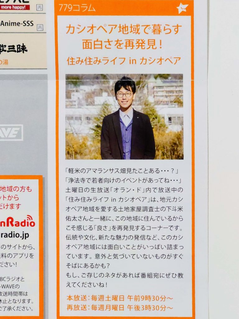 土曜日の生放送「オラン・ド」内で放送中の「住み住みライフ in カシオペア」は、地元カシオペア地域を愛する土地家屋調査士の下斗米佑太さんと一緒に、この地域に住んでいるからこそ感じる「良さ」を再発見するコーナーです。