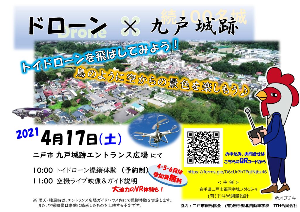 なお、雨天・強風時は、ガイドハウス内にて操縦体験を実施し、空撮映像は事前に録画したものを上映する予定ですのでご了承ください。