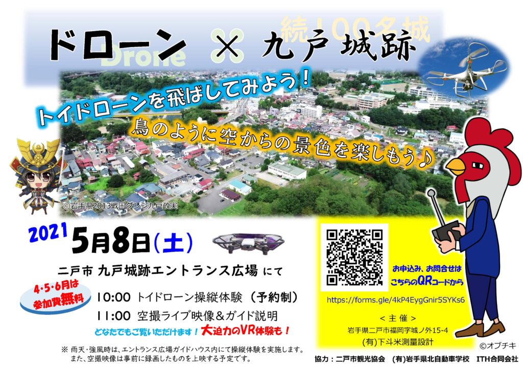 なお、雨天・強風時は、ガイドハウス内にて操縦体験を実施し、空撮映像は事前に録画したものを上映する予定ですのでご了承ください。