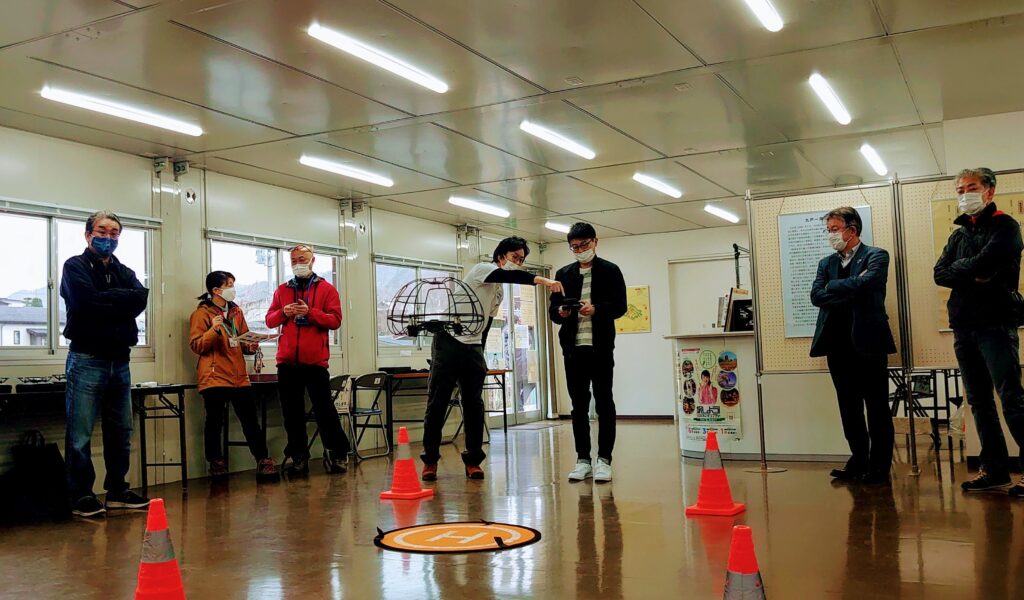 ドローンからリアルタイムの空撮映像をモニターで上映し、二戸市観光協会ご協力のもとガイドをしていただきます。